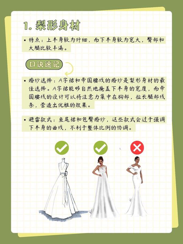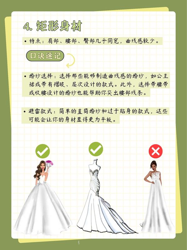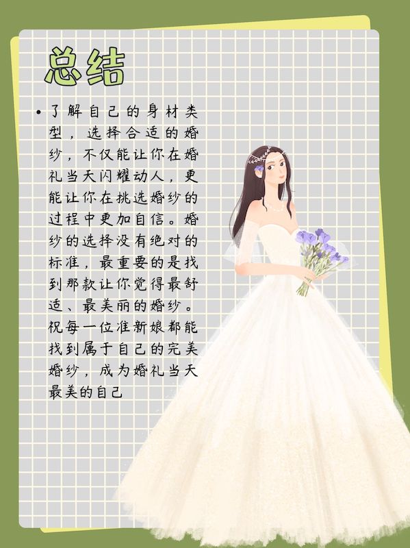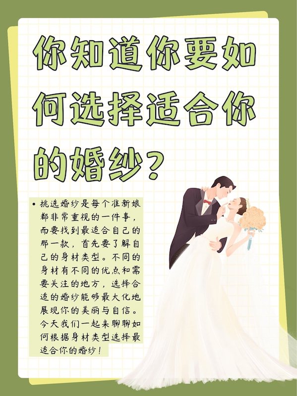 挑选婚纱是每个准新娘都非常重视的一件事,而要找到最适合自己的那一款,首先要了解自己的身材类型。不同的身材有不同的优点和需要关注的地方,选择合适的婚纱能够最大化地展现你的美丽与自信。今天我们一起来聊聊如何根据身材类型选择最适合你的婚纱!
